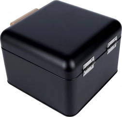 Stilfuld metalbrødkasse i mat sort er et fremragende valg til overskuelig og hygiejnisk opbevaring af brød. Takket være de kompakte mål 22 × 20 × 14 cm fylder den minimalt på køkkenbordet og rummer alligevel et lille brød, flere boller eller flutes.