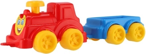 Med følger en aftagelig vogn, som nemt kobles på igen — så kan børn “transportere last”, udvikle finmotorik, hånd-øje-koordination og fantasi. Legetøjet er egnet fra 12 måneder og er takket være plastmaterialet også perfekt til sandkassen.