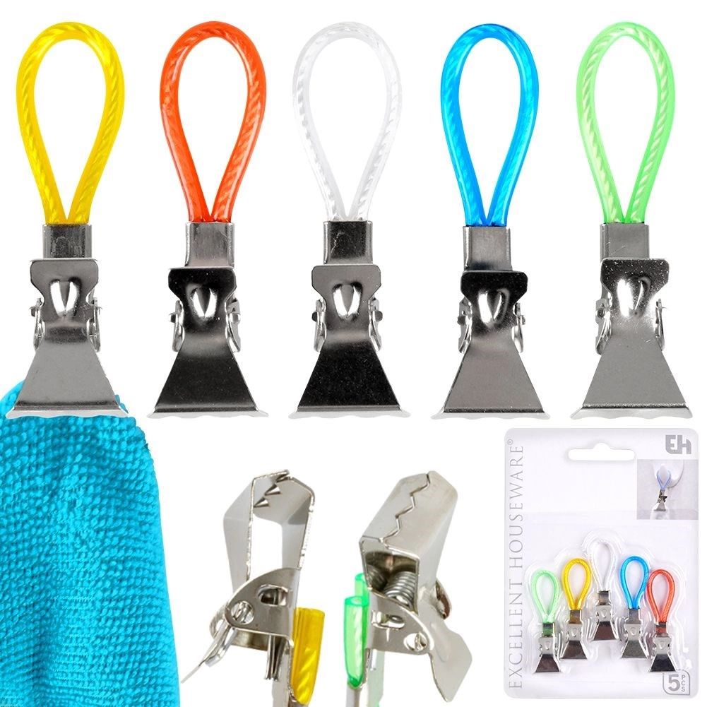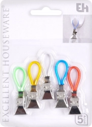 Den robuste metalkonstruktion sikrer lang levetid og et pålideligt greb uden at glide. Sættet med 5 stk. dækker hele husstandens behov – fra badehåndklæder til køkkenviskestykker. De kompakte mål sparer plads og gør klemmerne til en alsidig organisator til forskellige tekstiler.