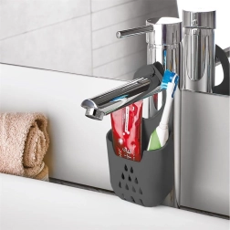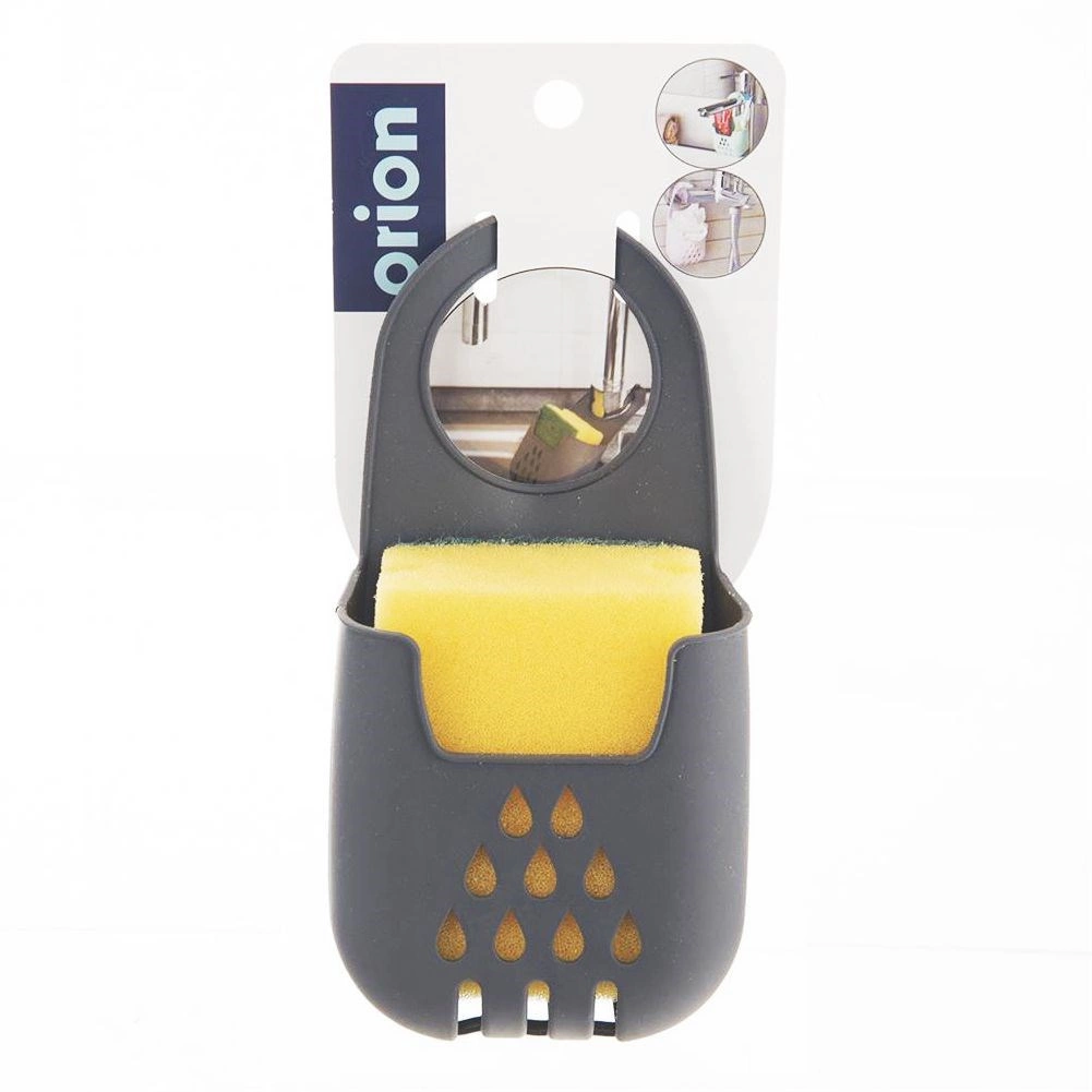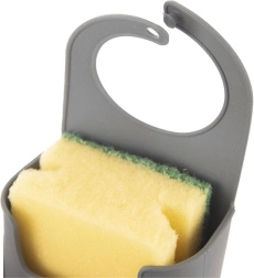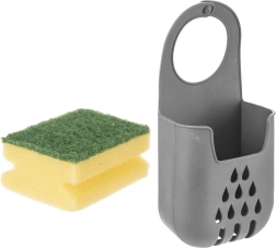 Praktisk hængeholder til svamp, der nemt fastgøres på vandhanen, holder dit køkken rent og overskueligt. Takket være afløbshullerne tørrer svampen hurtigt, forbliver hygiejnisk og er altid lige ved hånden. Fremstillet af holdbart materiale i elegant grå. Nemt at montere, hurtig tørring og pladsbesparende ved vasken.