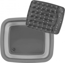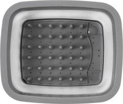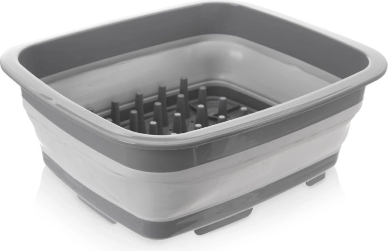 Den aftagelige indsats med pinde holder tallerkenerne og sikrer hurtig tørring. Når indsatsen tages ud, bliver stativet straks til en praktisk vask eller skål – en fremragende løsning til små køkkener, sommerhus, have og camping. Kvalitets termoplastisk silikone og robust plast er let at vedligeholde, og indsatsen kan gå i opvaskemaskinen.