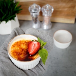 Disse alsidige porcelænsramekiner er perfekte til crème brûlée, soufflé, små gratinerede portioner samt til servering af oliven, nødder, dips og dressinger. Det klassiske rillede design med blank glasur passer ind i ethvert køkken og tager sig smukt ud på et dækket bord.