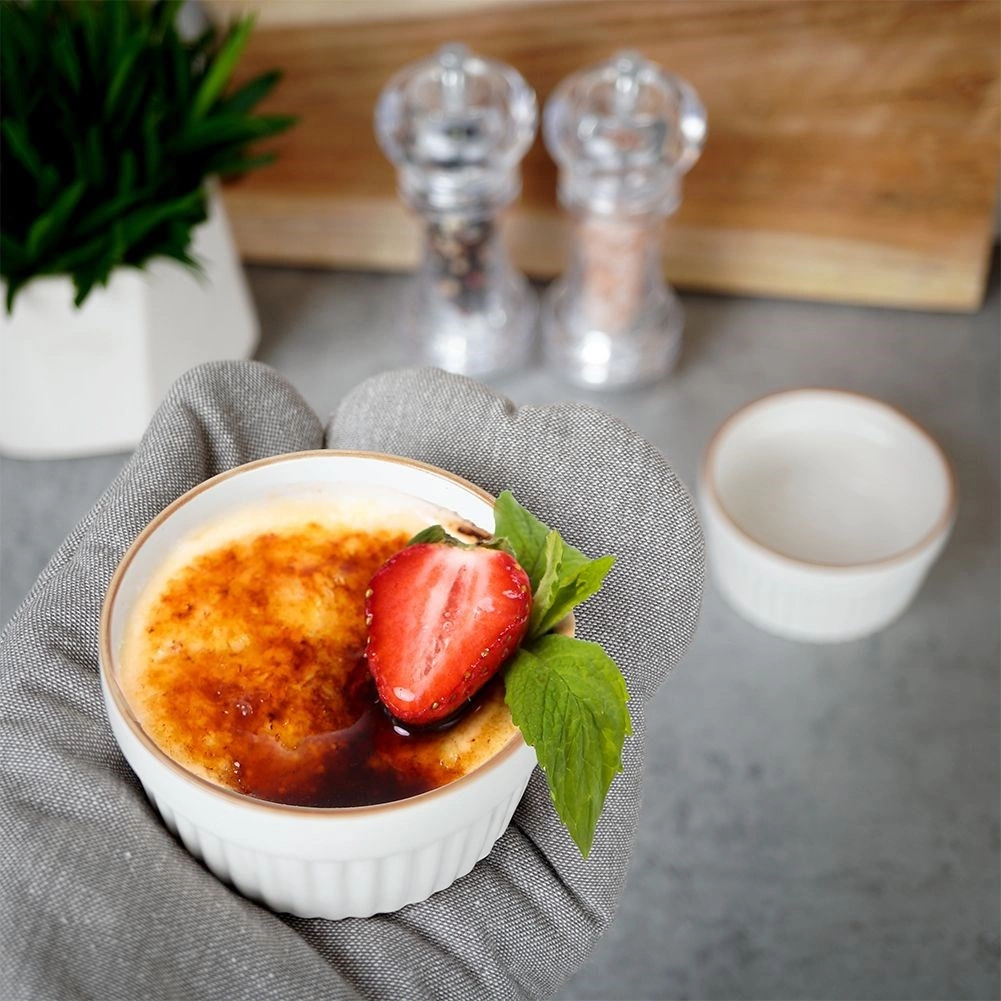 Porcelænsramekinerne tåler høje temperaturer i ovnen og sikrer jævn bagning af både desserter og salte retter.