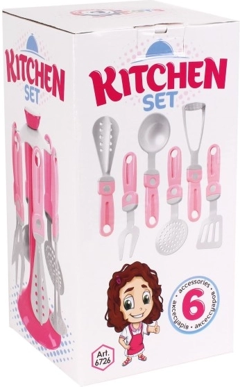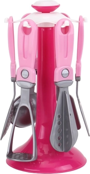 Hvis du elsker designgenstande, må du ikke mangle dette originale stativ med køkkenredskaber til små husmødre derhjemme. Et uundværligt tilbehør for alle små kokke og hjælpere i hjemmet eller for piger, der gerne vil lave noget lækkert til deres dukker. Sættet indeholder 6 stykker redskaber sammen med et praktisk stativ, så du har alt ved hånden. Alt er fremstillet af kvalitets- og ugiftig plast. Velegnet til børn fra 3 år.