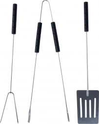 Dette alsidige grillsæt er ideelt til at vende, servere og præcist gribe bøffer, grøntsager eller fisk. De lange håndtag sikrer sikker brug over varmen, og den solide konstruktion i forkromet stål tåler høje temperaturer.
