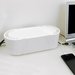 Hold skrivebord og stue perfekt ryddelige med denne hvide kabelorganisator i målene 32 × 12 × 11,5 cm. Den skjuler forlængerledninger og opladere, forhindrer sammenfiltring af kabler, beskytter mod støv, fugt og mekaniske skader og sikrer samtidig sikker varmeafledning takket være ventilationshuller i låget. Sideåbninger gør det nemt at føre kabler korrekt og øger sikkerheden i hjem med børn og kæledyr.