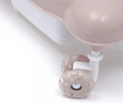 Takket være tretrins højdejustering tilpasses gåvognen barnets aktuelle behov. De forreste 360° drejelige silikonehjul sikrer jævn bevægelse og skånsomhed mod gulve, mens de bageste faste gummihjul øger stabiliteten. Et særligt antivælt-system giver et ekstra lag sikkerhed.