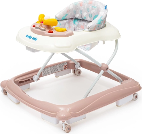 BABY MIX gåvognen er designet til børn fra 6 måneder og kombinerer sjov med sikker støtte under indlæring af gang. Multimediepanelet med lyseffekter, horn og drejeligt rat motiverer til aktiv leg og udvikler motorik og sanser. Sædet med behagelig polstring kan nemt tages af og vaskes, så vedligeholdelsen er enkel.
