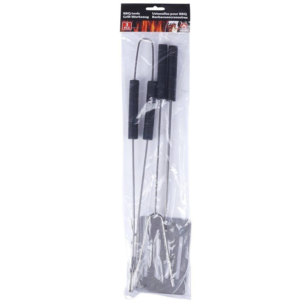Dette tredelte sæt grillredskaber er ideelt til nem vending, servering og håndtering af mad ved både grillning og stegning. Fremstillet af kvalitetsmetal i elegant sølvfarve og sort, robust plast for komfortabelt greb. Takket være de lange håndtag arbejder du sikkert og trygt ved grillen.