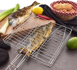 Nyd bekvemt grillning uden stress ved vending. Den dobbeltsidede metalkurv til fisk holder råvarerne sikkert på plads, så du blot kan vende hele kurven. Forkromet metal sikrer holdbarhed og nem vedligeholdelse, og det ergonomiske træhåndtag af gummitræ beskytter mod varme og ligger godt i hånden.