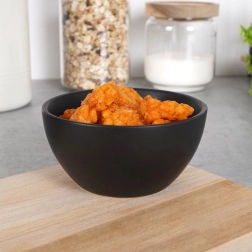 Denne alsidige skål bliver din hjælper til servering af nødder, tørret frugt, salater, dips og søde desserter. Den minimalistiske form og den matte sorte overflade passer ind i både moderne og klassiske køkkener og kan nemt kombineres med andet service.