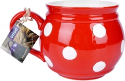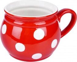 Stilfuldt keramisk krus med en kapacitet på 950 ml i rød farve med hvide prikker, ideelt til daglig brug. Takket være det komfortable håndtag og den “tøndeformede” silhuet ligger det godt i hånden og er velegnet til te, kaffe, kakao, urtedrikke og gløgg. Fremstillet af kvalitetskeramik, holdbart, let at rengøre og sikkert til kontakt med fødevarer.