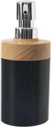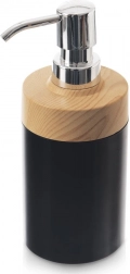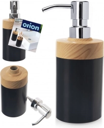 Denne stilfulde dispenser kombinerer moderne mat sort med naturligt trædekor og en blank pumpe. Den er velegnet til flydende sæbe, desinfektion og opvaskemiddel. Takket være det enkle skruelåg er genopfyldning hurtig og ren, hvilket sparer tid og penge ved køb af større, mere miljøvenlige refiller.