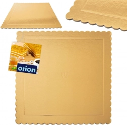 Det førsteklasses gyldne underlag til kage eller tærte er perfekt til transport, dekoration og udstilling af desserter. Takket være folien på begge sider er det fugtbestandigt og bliver ikke blødt, så den færdige kage kan opbevares sikkert i køleskabet. Den bølgede dekorative kant giver dine kreationer et professionelt udseende.