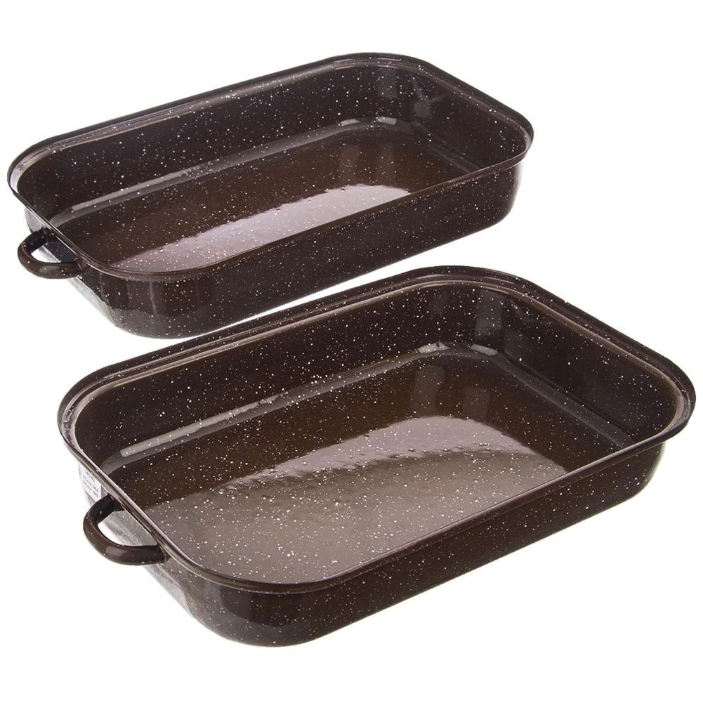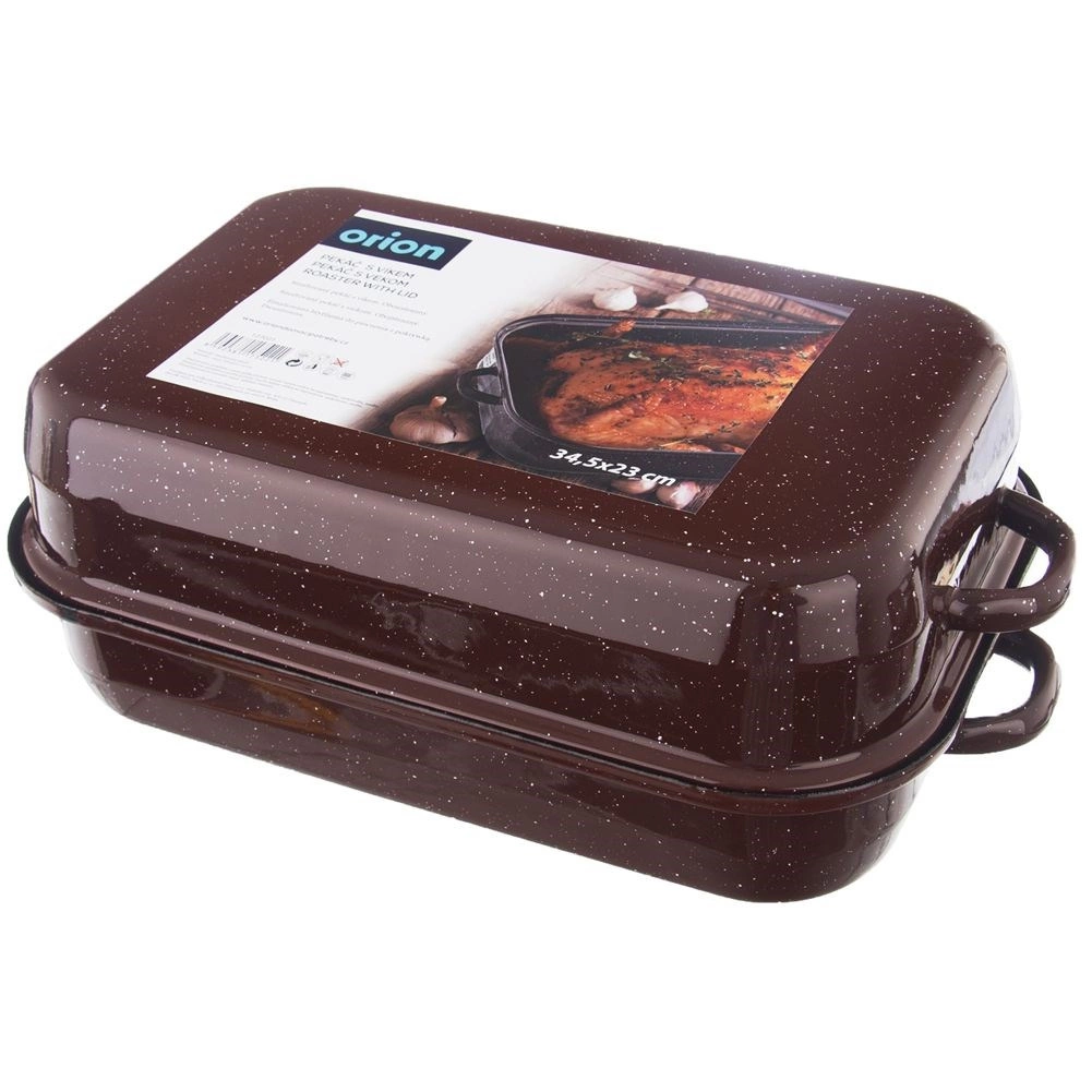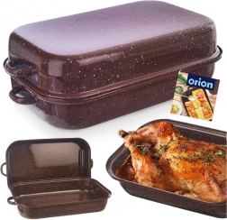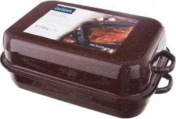 Rektangulær bradepande af høj kvalitets stål med emaljeret overflade i brun farve, som tilbyder fremragende varmeegenskaber og lang levetid. Emaljen er sundhedsmæssigt ufarlig og sikker også for allergikere. Låget med håndtag kan bruges separat – så får du to praktiske fade til både tilberedning og servering.