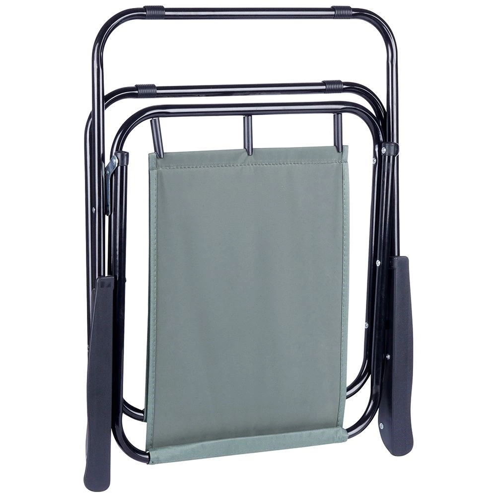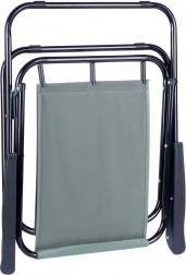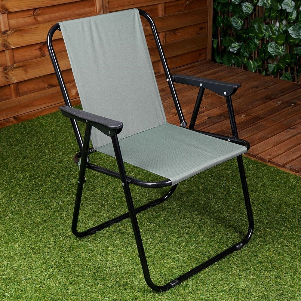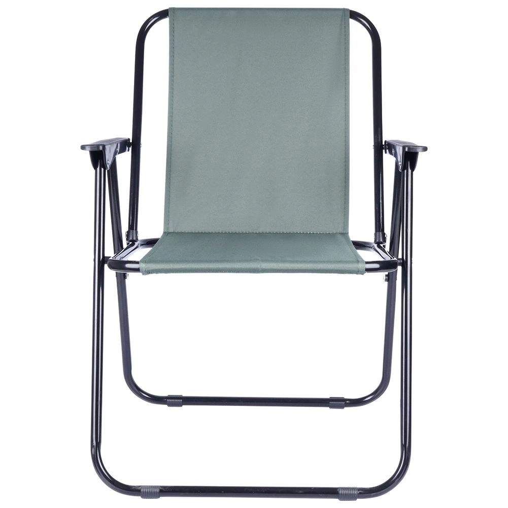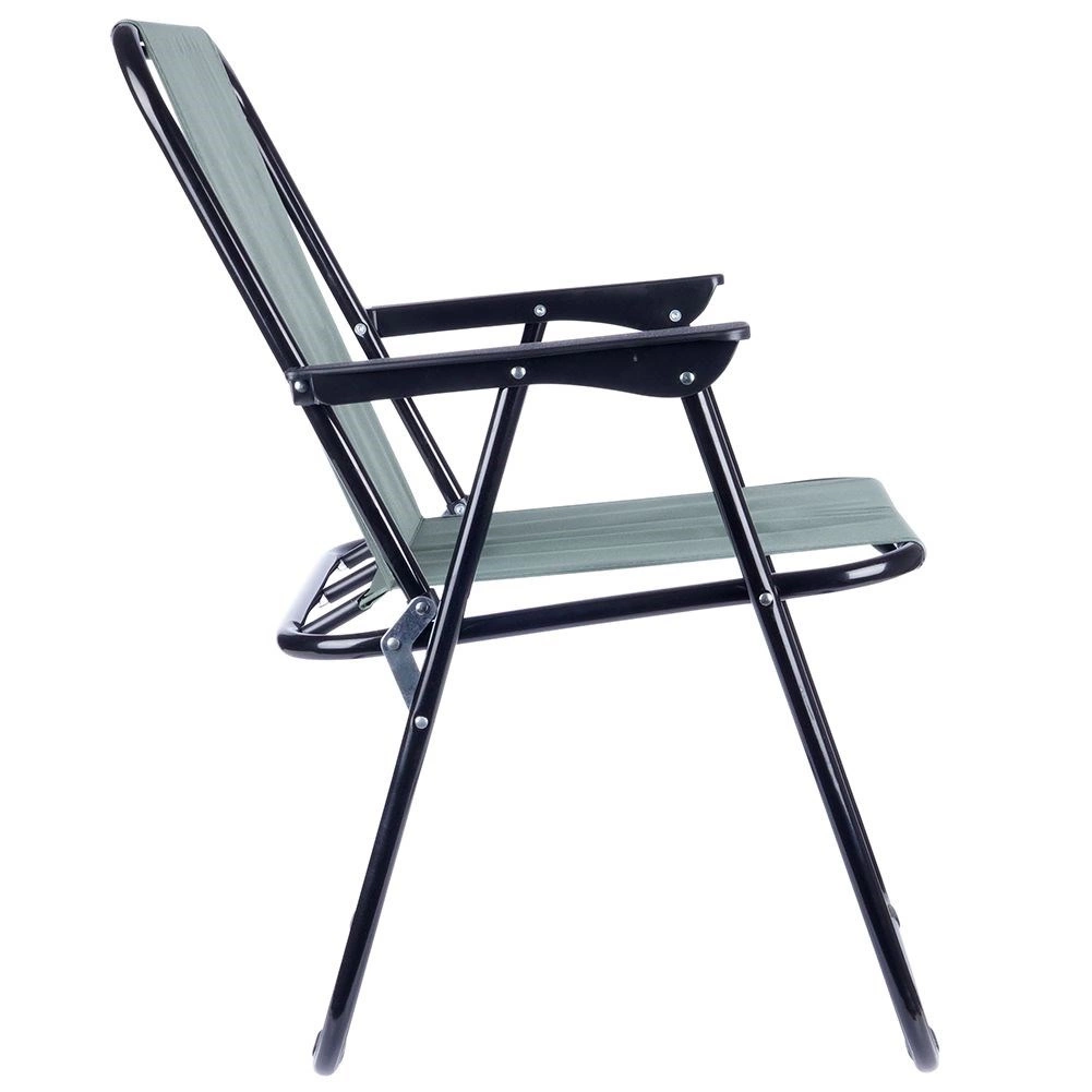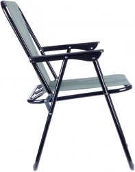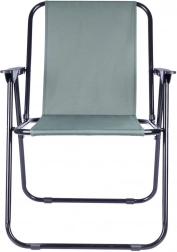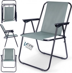 Praktisk og let sammenklappelig turstol med mål 54 × 44,5 × 72,5 cm, ideel til strand, have, camping og fiskeri. Har en solid metalramme, slidstærkt polstret polyesterbetræk i grå og behagelige armlæn. Den er nem at folde ud og sammen, er stabil og tåler op til 110 kg.