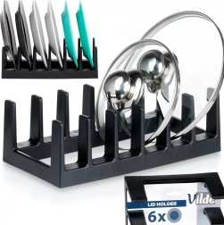 Hold køkkenet overskueligt og sikkert. Denne organizer muliggør vertikal opbevaring af låg og tallerkener, hvilket sparer plads og forhindrer ridser og skader. Perfekt til køkkenbordet, i skabet eller i en dyb skuffe.