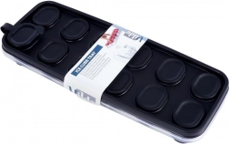 Denne lukkede isterningebakke med målene 25 × 10 × 3,5 cm er en fremragende hjælper i enhver husholdning. Låget med en praktisk påfyldningsåbning muliggør bekvem fyldning og jævn fordeling af vand i alle kamre, mens den tætsluttende konstruktion minimerer spild og optagelse af lugte fra fryseren.