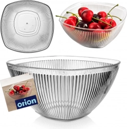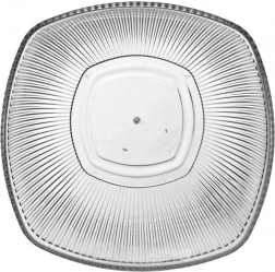 Stilfuld serveringsskål med afrundet firkantet form og lodret rifling, som tager sig flot ud på bordet både inde og ude. Transparent akryl fremhæver farverne på maden, og den teksturerede overflade giver et behageligt greb.