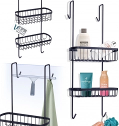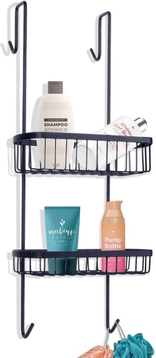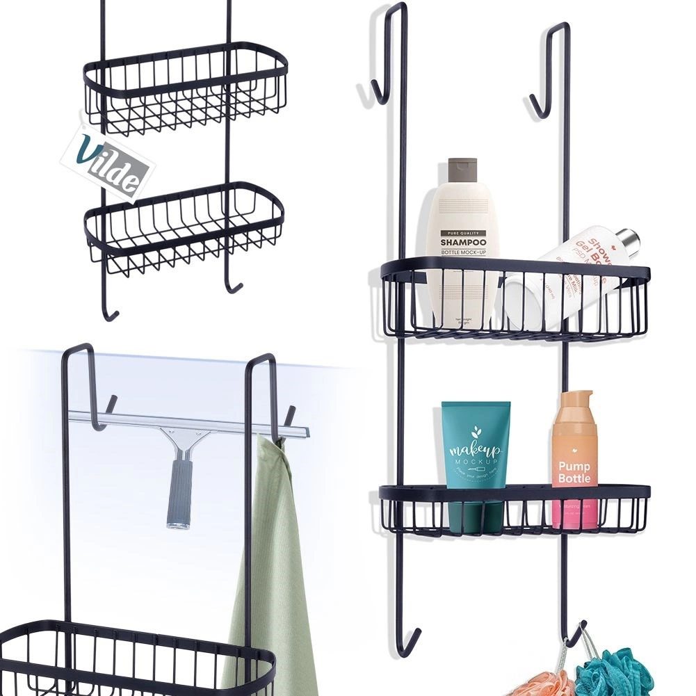 To trådkurve og nederste kroge holder shampoo, sæber og tilbehør overskueligt og inden for rækkevidde. Den åbne konstruktion sikrer vandafløb.