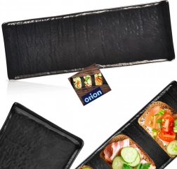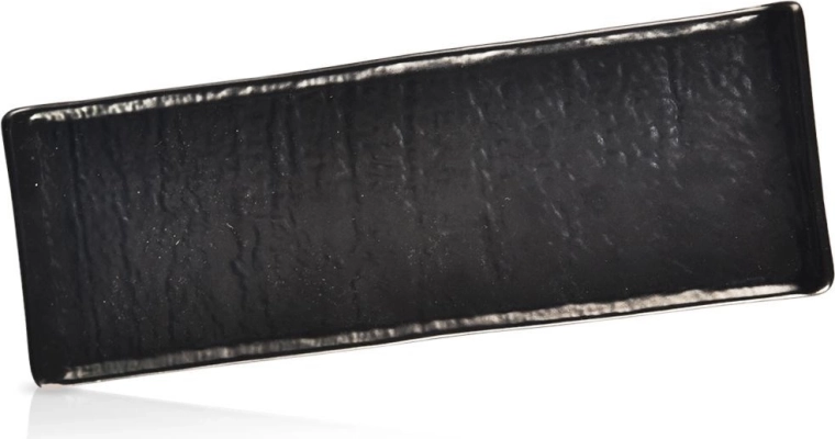 Den aflange rektangulære form, sort glasur og den fine overfladestruktur giver enhver anretning et professionelt udtryk.