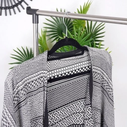 Bøjlerne har udskæringer på skuldrene og en nederste stang, så du uden problemer kan hænge T-shirts, blazere, kjoler med spaghetti-stropper, nederdele, bukser og tørklæder. Velouren er skånsom mod tekstiler og hjælper med at forhindre glid, krøl og trykmærker.