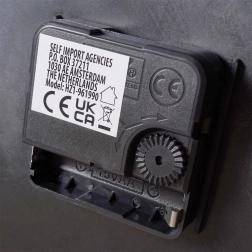 Skridsikre fodender beskytter gulvet mod ridser, og uret drives af 1× AA-batteri for stille og pålidelig gang.