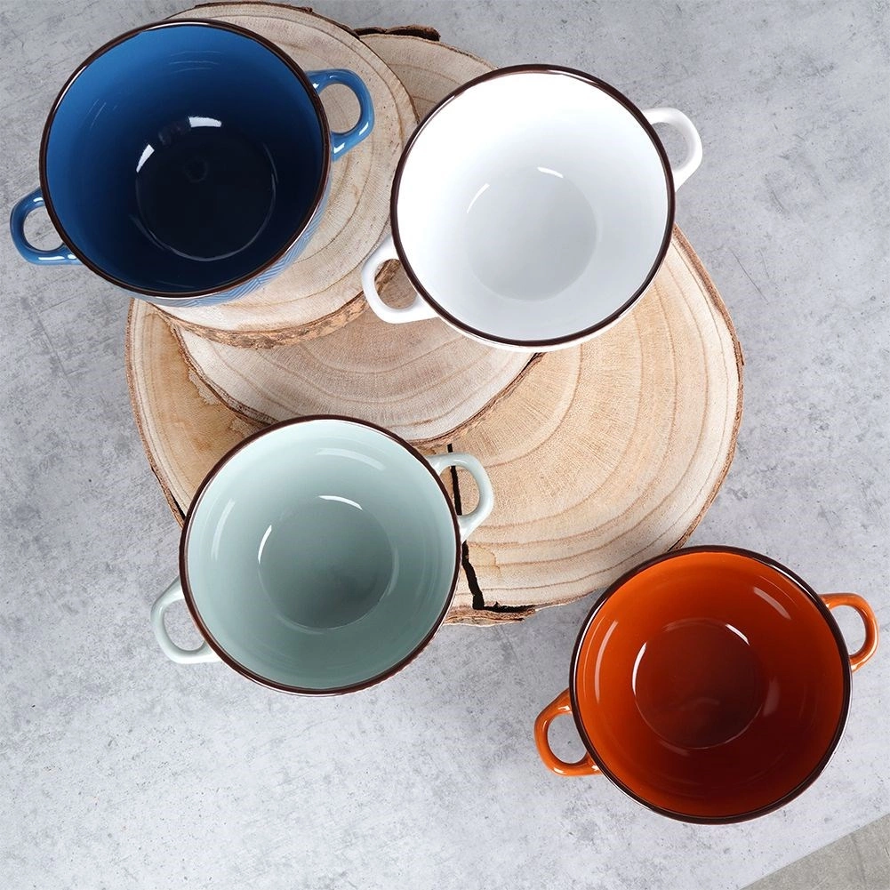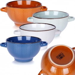Sættet med fire skåle med praktiske håndtag gør det nemt at servere varme supper, simreretter og snacks. Hver skål rummer 620 ml og måler 18 × 14 × 8 cm, hvilket giver god plads til mættende portioner. Kvalitetskeramik med blank glasur er holdbar og let at vedligeholde.