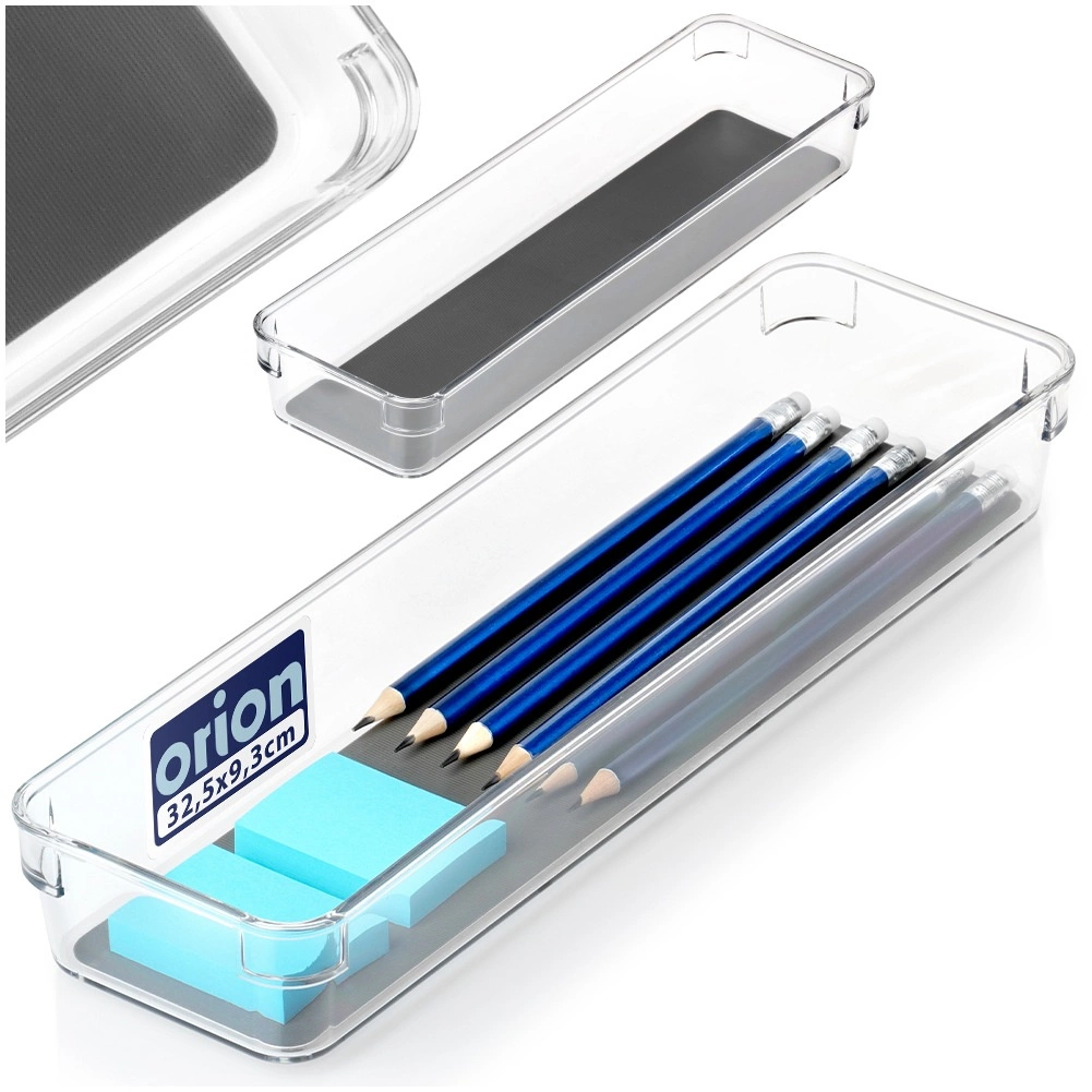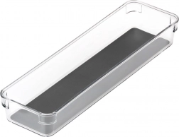 Organisér dine skuffer og hylder hurtigt og effektivt. De transparente sider giver øjeblikkeligt overblik over indholdet, mens den grå TPR-indsats forhindrer, at genstande glider. Organisatoren er holdbar, stabil og passer takket være den kompakte bredde også perfekt i smalle rum.