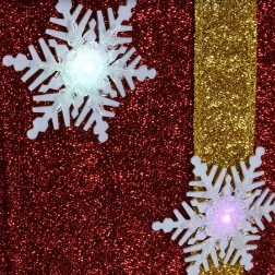 Rød glitteroverflade, hvid snefnugsdekoration og gylden sløjfe giver et luksuriøst udtryk, der fanger blikket med det samme.