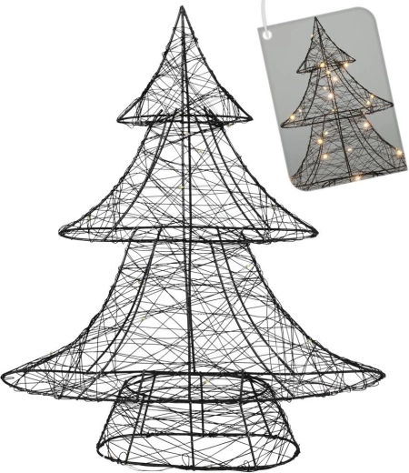 Designet, metaljuletræ i sort med fint sammenflettede tråde og varmt hvidt LED-lys skaber en hyggelig, festlig atmosfære i dit hjem. Takket være den kompakte størrelse på 40 cm passer det til stue, soveværelse og kontor.