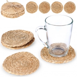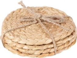 Opdag praktiske og æstetiske underlag af naturlig jute, som beskytter dit bord mod varme, kondens og ridser. Med en diameter på 10 cm er de ideelle til glas, krus og kopper og matcher perfekt interiører i boho-, skandinavisk eller naturlig stil.