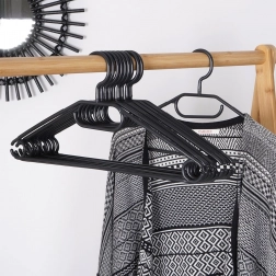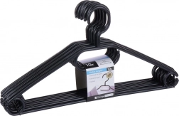 Hold din garderobe overskuelig med et sæt på 10 kvalitetsbøjler i elegant sort. Takket være den roterende krog kan de nemt placeres i enhver skabsløsning, mens de flere ophængningspunkter gør det muligt at hænge skjorter, jakker, nederdele, bukser og tilbehør som tørklæder eller slips.