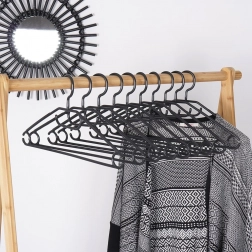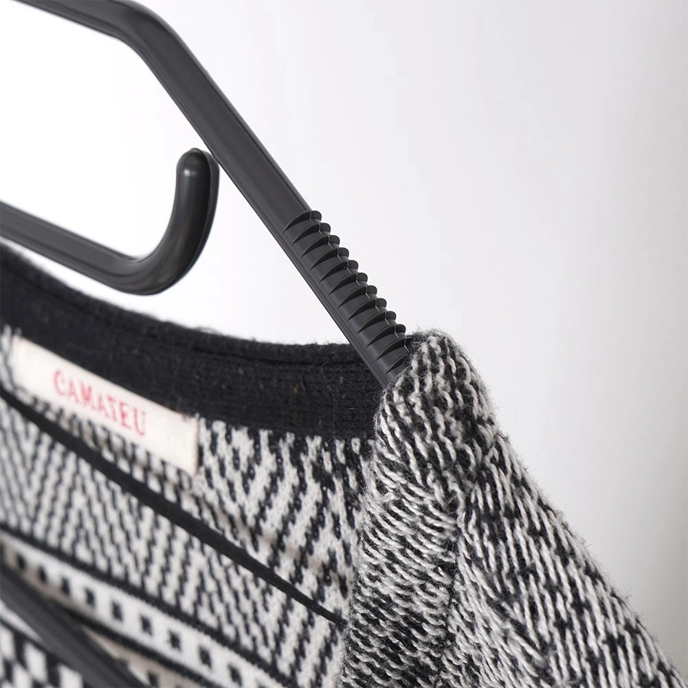 Hver bøjle måler 41 × 21 × 0,5 cm og er fremstillet af holdbar plast for lang levetid. Praktiske hak og åbninger hjælper med at forhindre, at tøjet glider, og sparer plads. Ideel til hjemmet og butikker for effektiv organisering af skabet og for at holde orden.