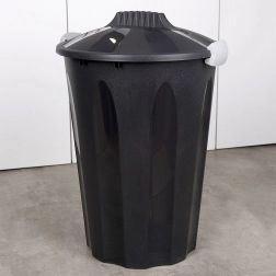 Takket være det praktiske låg med centralt greb åbnes og lukkes spanden nemt og begrænser effektivt spredningen af ubehagelige lugte.