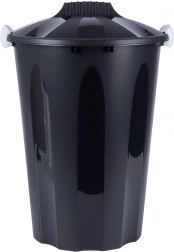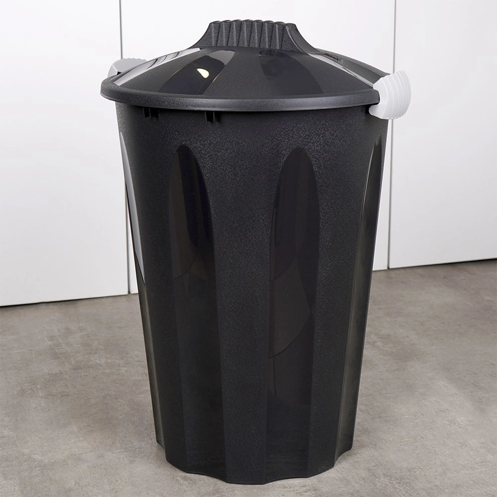 Spanden er lavet af kvalitetsplast i sort med lysegrå-hvide klips for sikker lukning. Materialet er stærkt, let og holdbart til daglig brug. Fremstillet af 90 % genanvendt materiale og 100 % genanvendelig, hvilket gør den til et miljøvenligt valg.