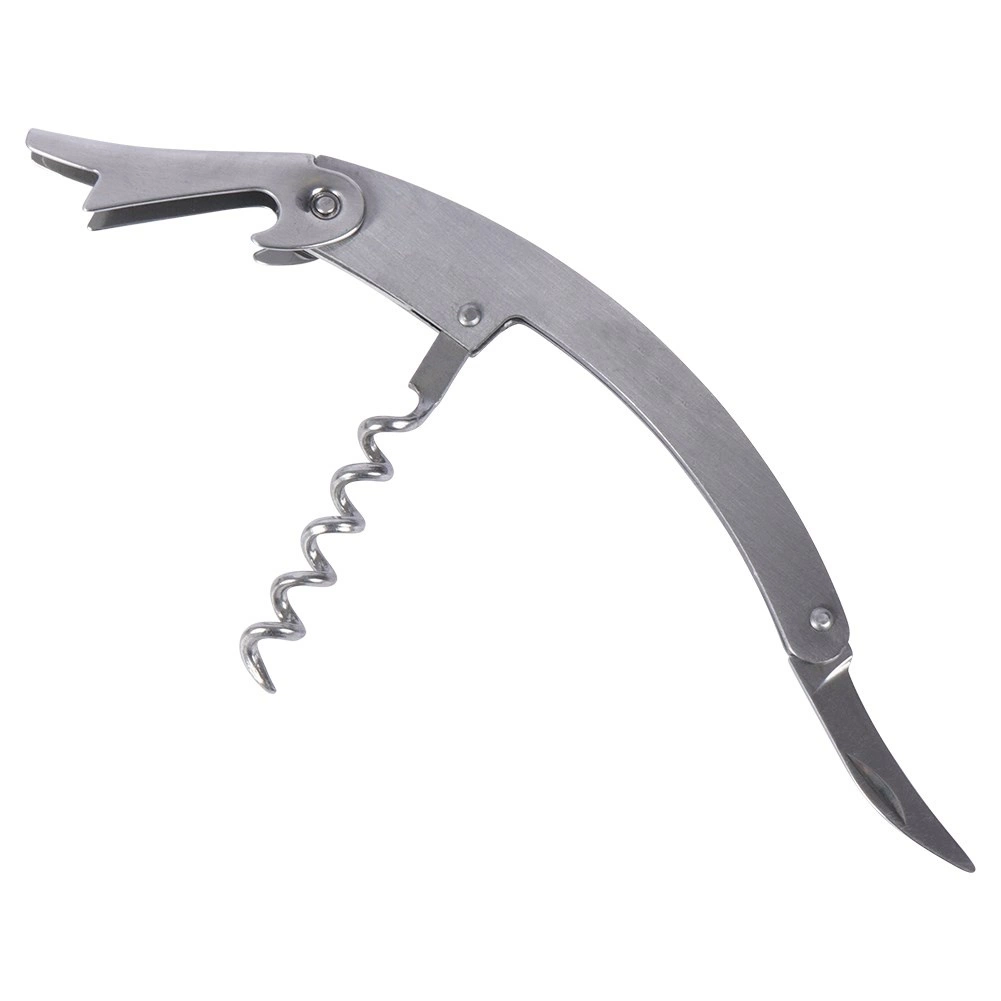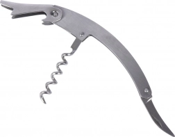 Sammenklappelig tjenerproptrækker med spiral, løftearm og folieskærer, som muliggør hurtig og sikker åbning af flasker samt aftagning af kapselpropper.