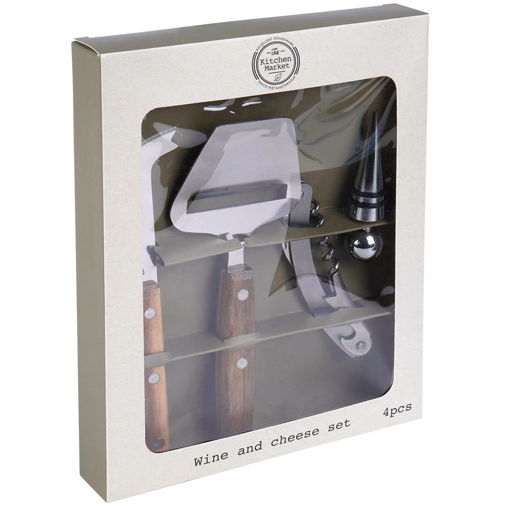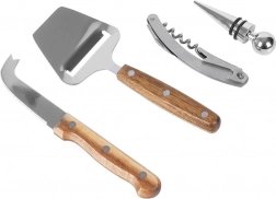 Dette alsidige sæt med tilbehør til vin og ost kombinerer kvalitet, funktionalitet og tidløst design. Proptrækkeren sørger for hurtig og sikker åbning af vin og fjernelse af kapselpropper, mens proppen bevarer friskhed og aroma i åbnede flasker. Ostekniven og osteskæreren giver præcis skæring af oste fra bløde til hårde.