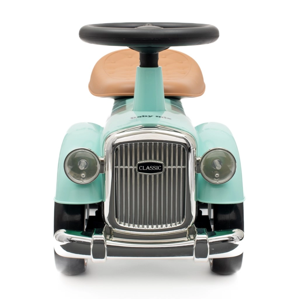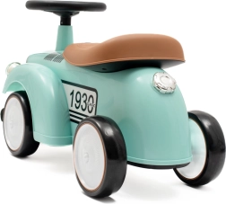 Baby Mix Retro løbecyklen i mint kombinerer tidløst design og funktionelle detaljer til daglig leg og motorisk træning. Takket være den lave vægt er den nem at bære, mens de brede hjul og det komfortabelt formede sæde sikrer stabilitet og komfort under kørslen. Det drejelige rat med horn lærer barnet koordination og giver endnu mere køreglæde.