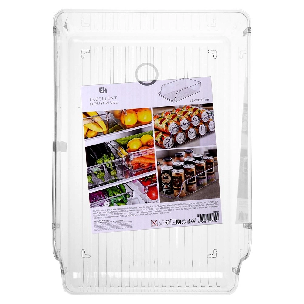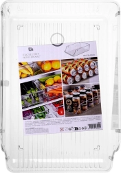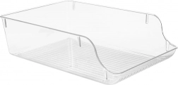 Praktisk køleskabsorganisator i målene 35 × 22,5 × 10 cm, som hjælper med at holde fødevarer overskueligt organiseret. Takket være de gennemsigtige sider har du altid indholdet i øjenhøjde, og via den forreste udskæring kan du nemt trække den ud. Boksen er lavet af slidstærk og fødevaresikker plast, velegnet til frugt, grøntsager og småvarer og passer også perfekt i spisekammeret eller på en hylde.