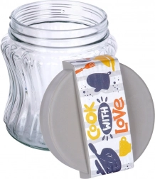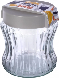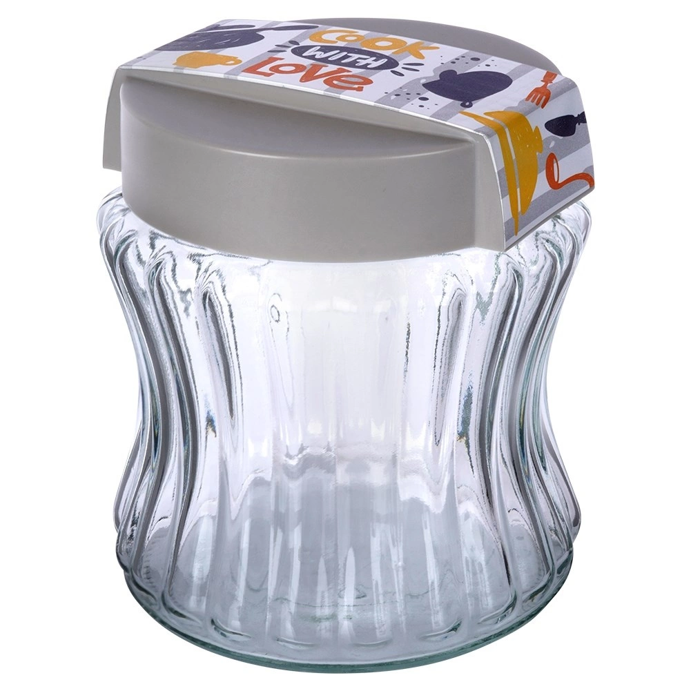 Stilfuld glaskrukke med bølget relief og lysegråt låg – ideel til opbevaring af mel, sukker, salt, rasp, nødder, kaffe eller te. Robust, klart glas uden BPA er sikkert til madvarer og giver øjeblikkelig kontrol af indholdet uden at åbne.