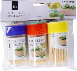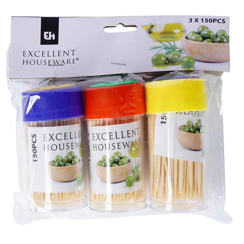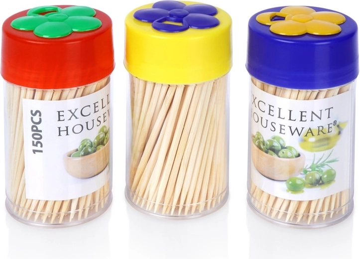 Sættet indeholder 3 gennemsigtige beholdere, hver med 150 kvalitets bambus-tandstikkere. Det naturlige materiale er stærkt, glat og sikkert til kontakt med fødevarer. Med doseringslåget er brugen hurtig, ren og overskuelig.