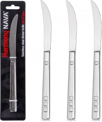 Sættet med tre bord-steakknive Harmony kombinerer tidløst design og funktionalitet. Det polerede rustfri stål ser moderne ud på ethvert bord, og det savtakkede skær klarer kød, brød og grøntsager. Knivene ligger godt i hånden, og den afbalancerede vægt gør skæringen behagelig og præcis.