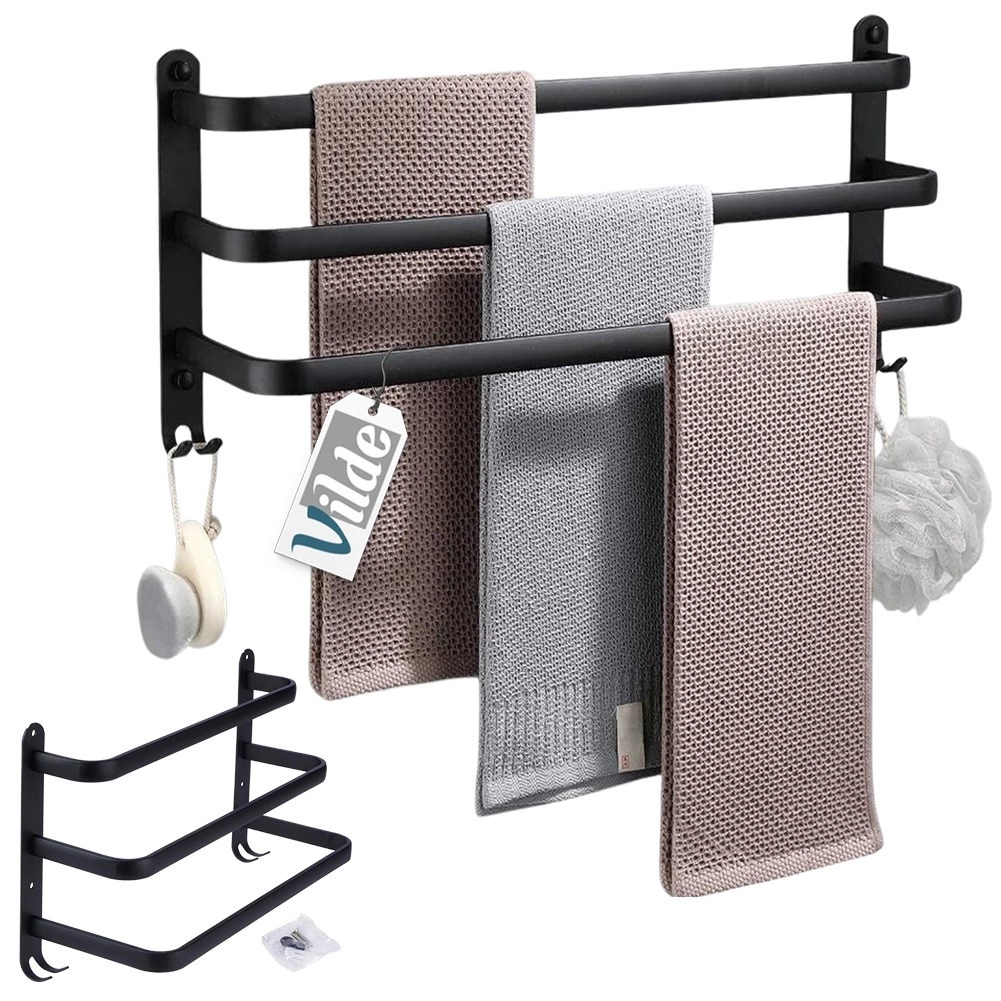Tre horisontale stænger gør det muligt at hænge flere håndklæder op på én gang, så de tørrer hurtigere og forbliver friske.