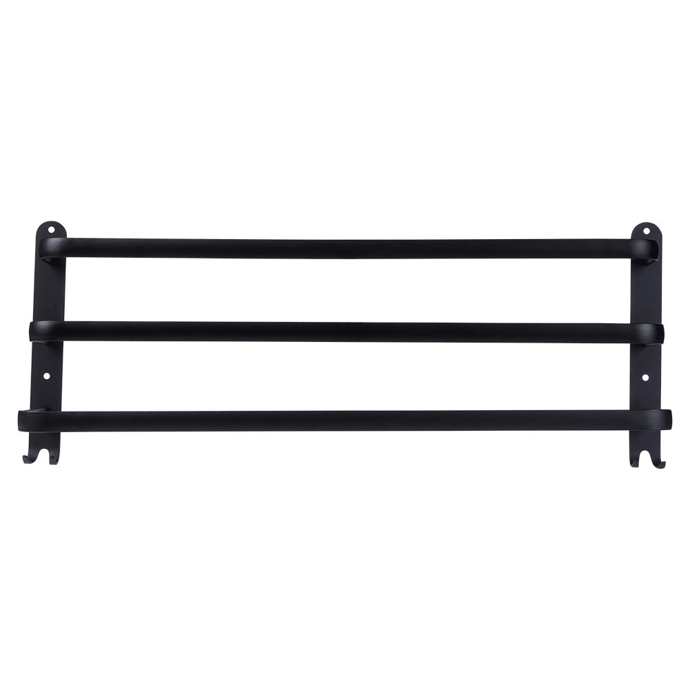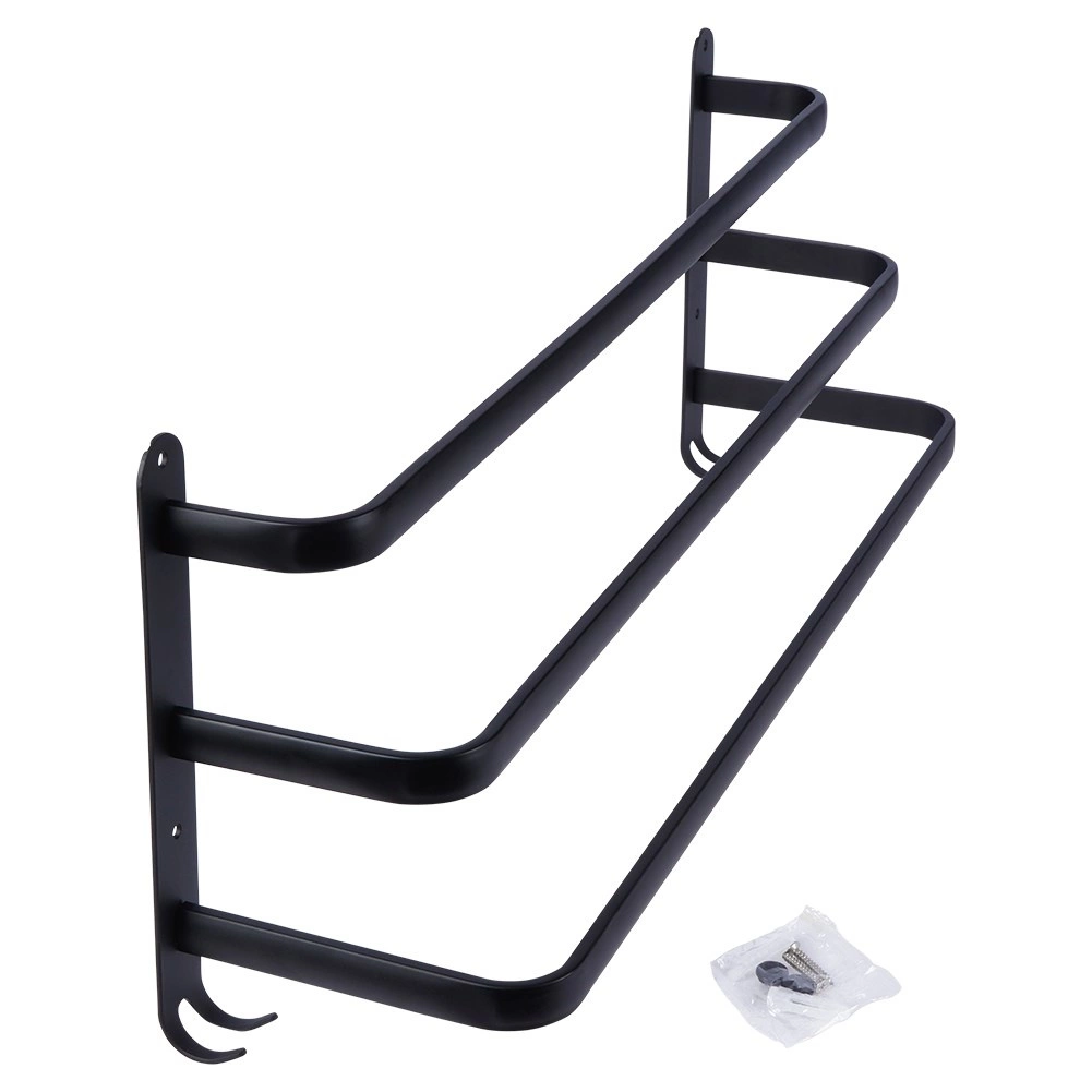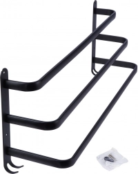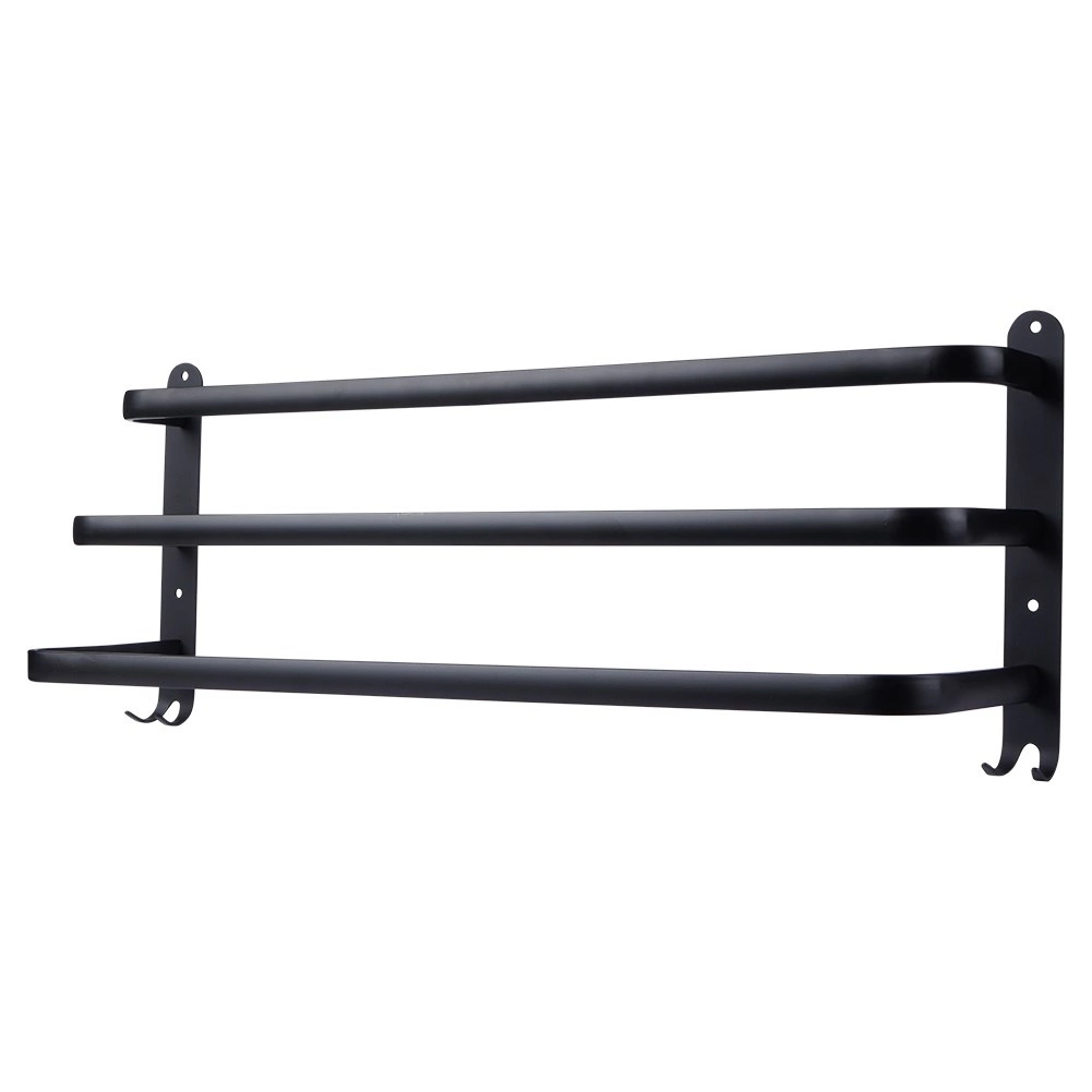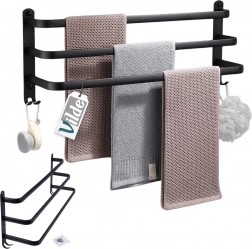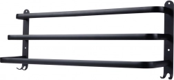 En praktisk og elegant håndklædeholder med tre parallelle arme, der giver rigelig plads til tørring og organisering. De fire nederste kroge er perfekte til vaskeklude, børster eller andet badeværelsestilbehør. Det robuste design i mat sort fremhæver moderne, industrielle samt klassiske badeværelser.