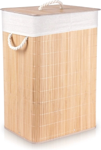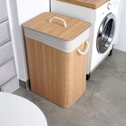 Kurven er lavet af solide bambuslameller og suppleret med en linnedindsats, der nemt kan tages ud og vaskes. Den robuste, men lette konstruktion og rebhåndtagene gør det nemt at bære selv ved større fyldning.
