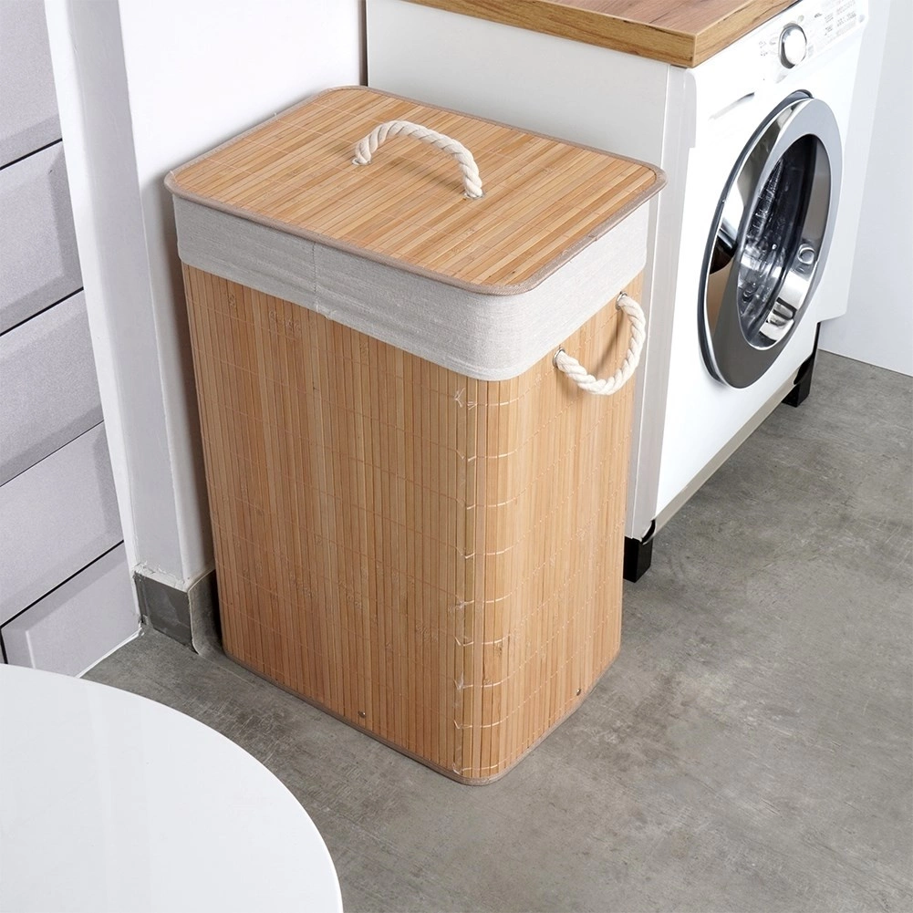 Hold orden med stil. Denne beige bambus-vasketøjskurv kombinerer et naturligt look med praktiske detaljer, som enhver husstand vil sætte pris på. Takket være de to rum kan du nemt sortere vasketøjet i lyst og mørkt, og det aftagelige låg hjælper med at bevare friskheden i rummet.