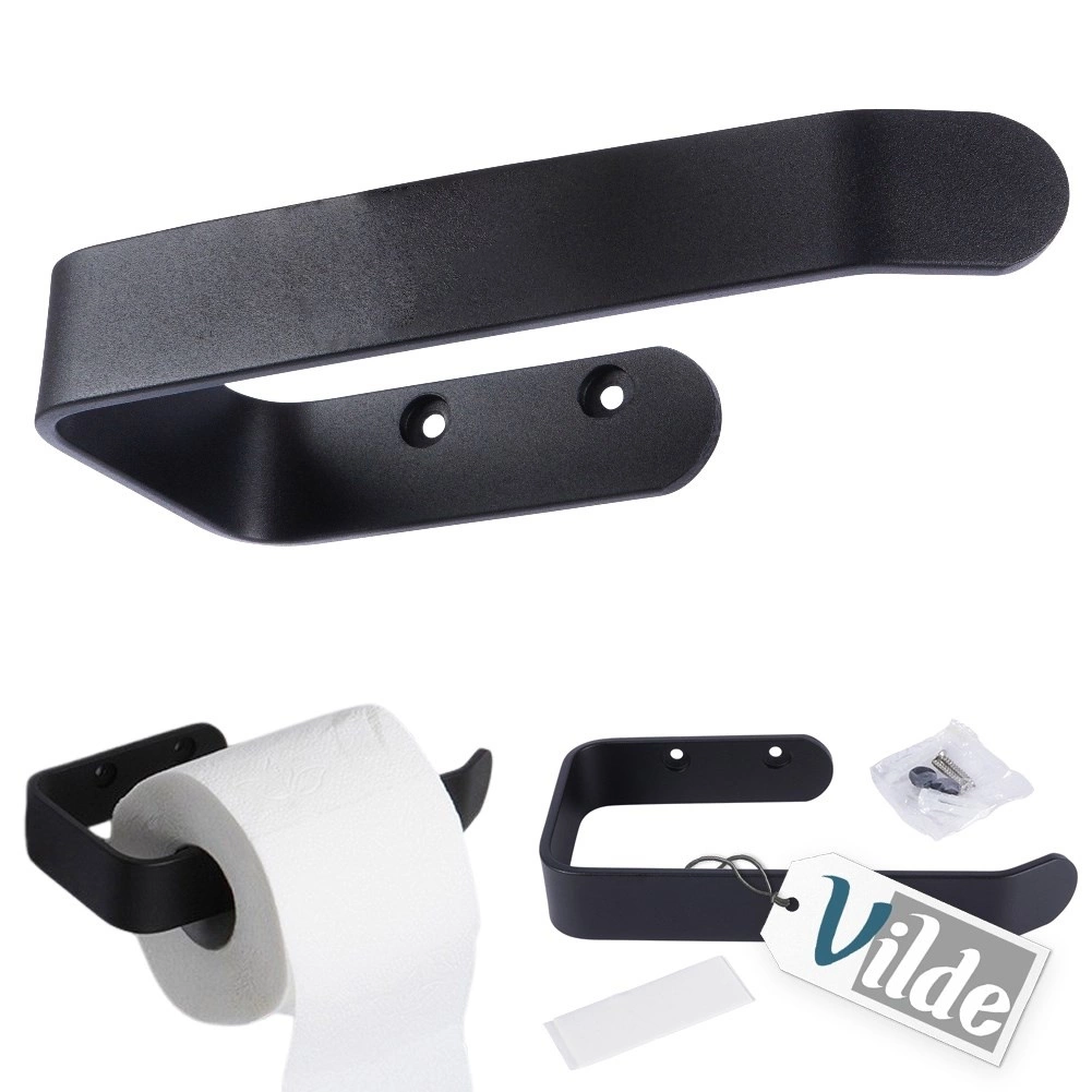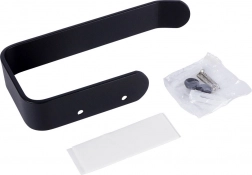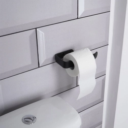 Elegant holder til toiletpapir i kvalitetsmetal i mat sort, som passer perfekt til både moderne og klassiske badeværelser. Den åbne konstruktion muliggør hurtig udskiftning af rullen og jævn afrulning af papiret.
