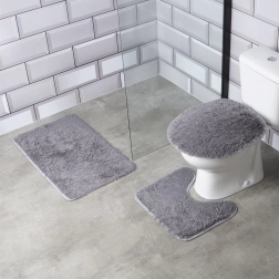 Giv badeværelset et løft med komfort og sikkerhed. Det tredelte sæt måtter giver en blød og varm overflade under fødderne og beskytter samtidig mod kolde gulve. Den neutrale grå nuance er let at matche til enhver stil.