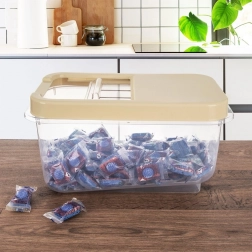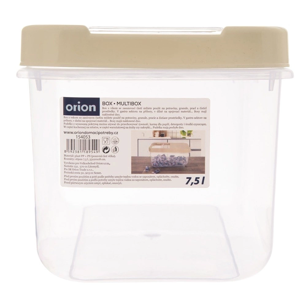 Denne alsidige boks med en kapacitet på 7,5 l hjælper med at holde orden i køkken, spisekammer og badeværelse. Det gennemsigtige korpus gør det muligt at tjekke beholdningen med det samme uden at åbne, og det beige låg med skydelukning sikrer nem dosering og hurtig adgang.